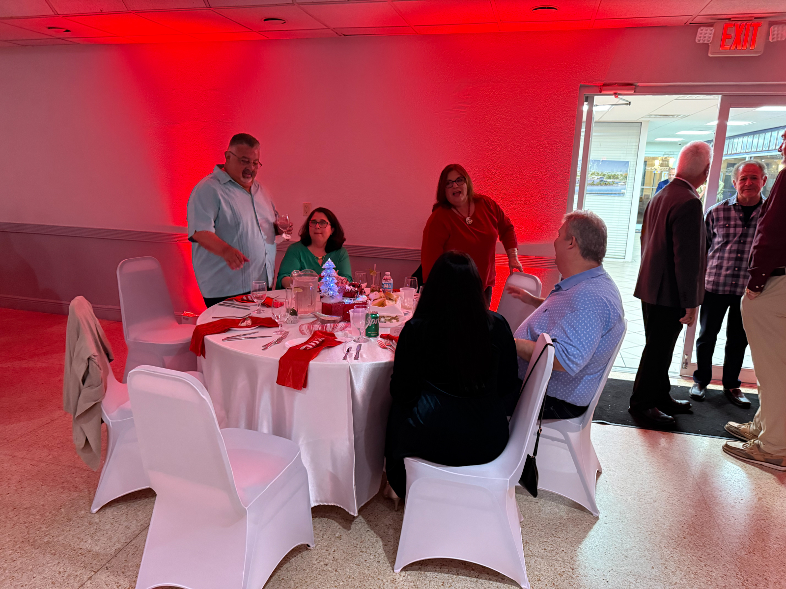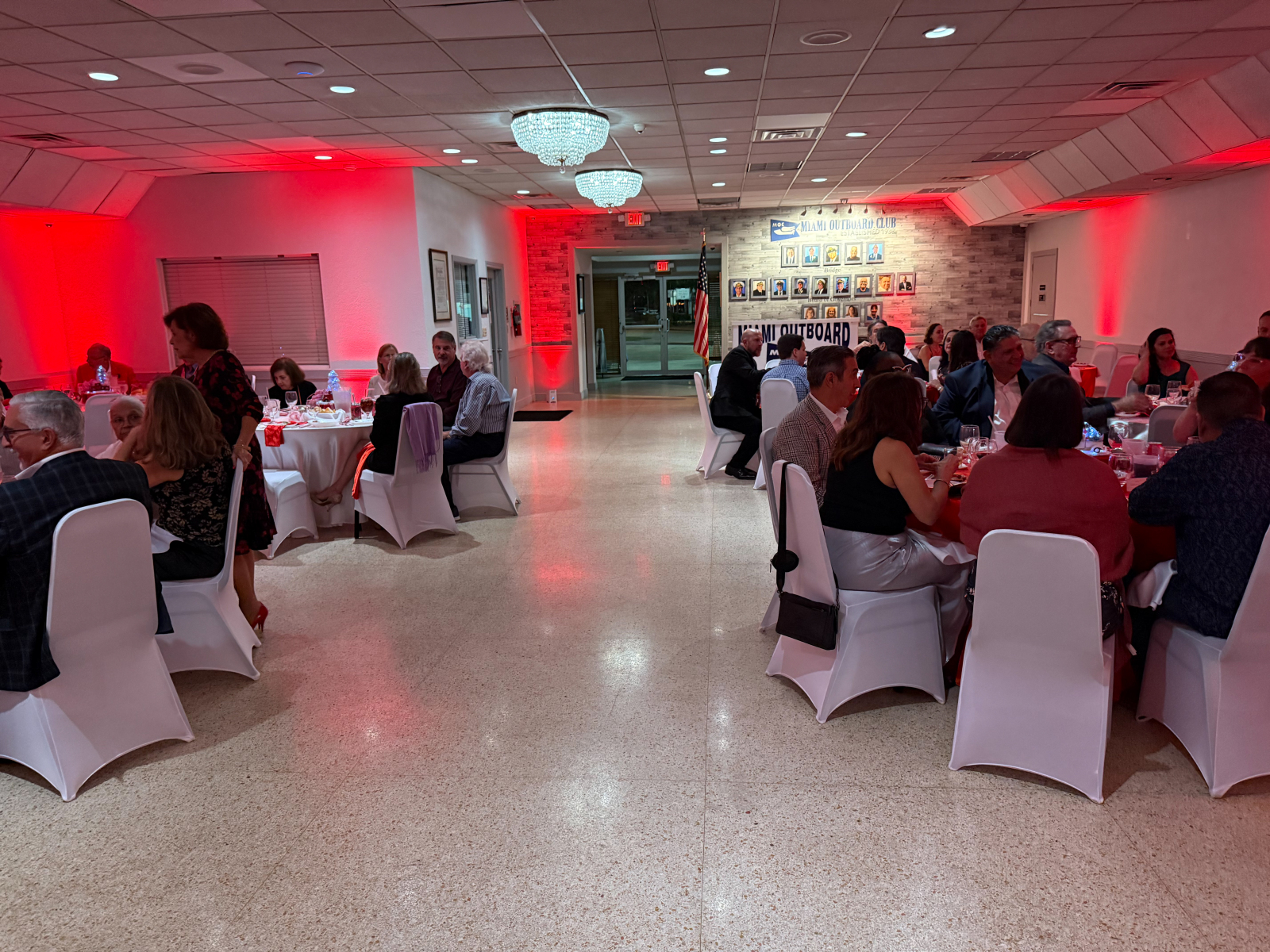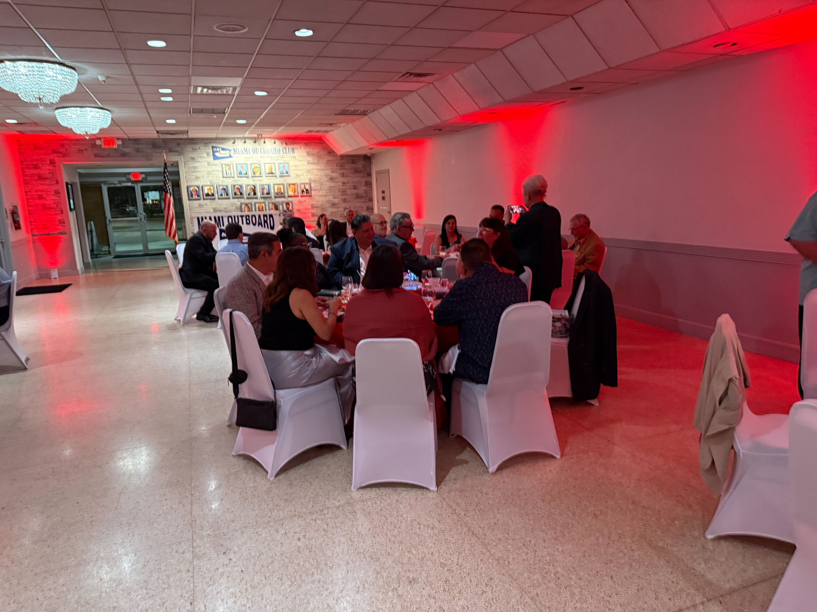 The Holiday Gale (Party) this year was at the same location we celebrated the 70th Anniversary of the club earlier this year. The Miami Outboard Clyb hosted both events and did an amazing job. Thanks to member Tony Hernandez for all the assistance with the MOC in getting everything ready. In charge of decorating Yovanna Hernandez, Millie Garcia, Al and Miriam Padilla did an amazing creative job as always. The venuw was set up with a very festive holiday theme and colors in red and white.