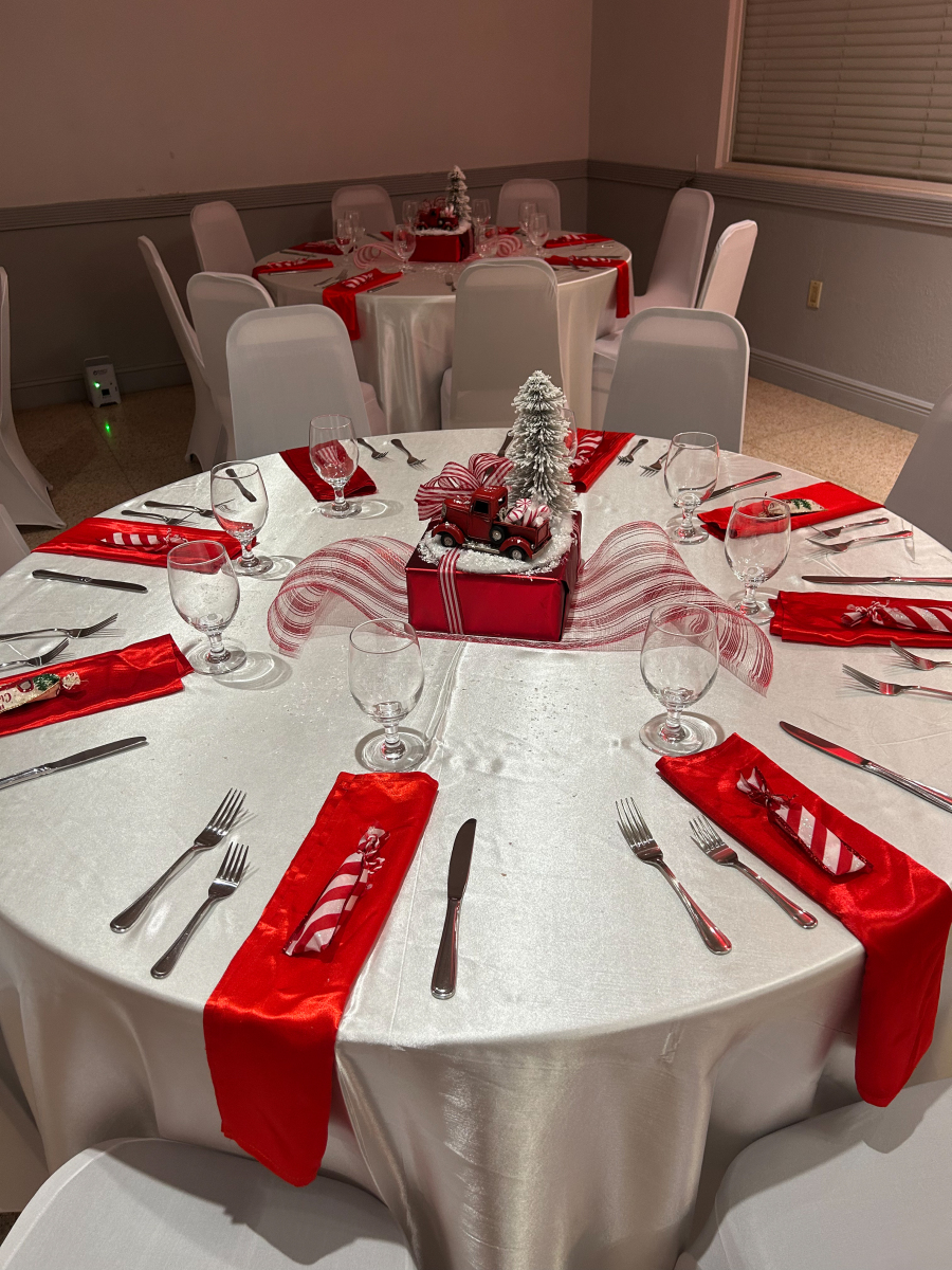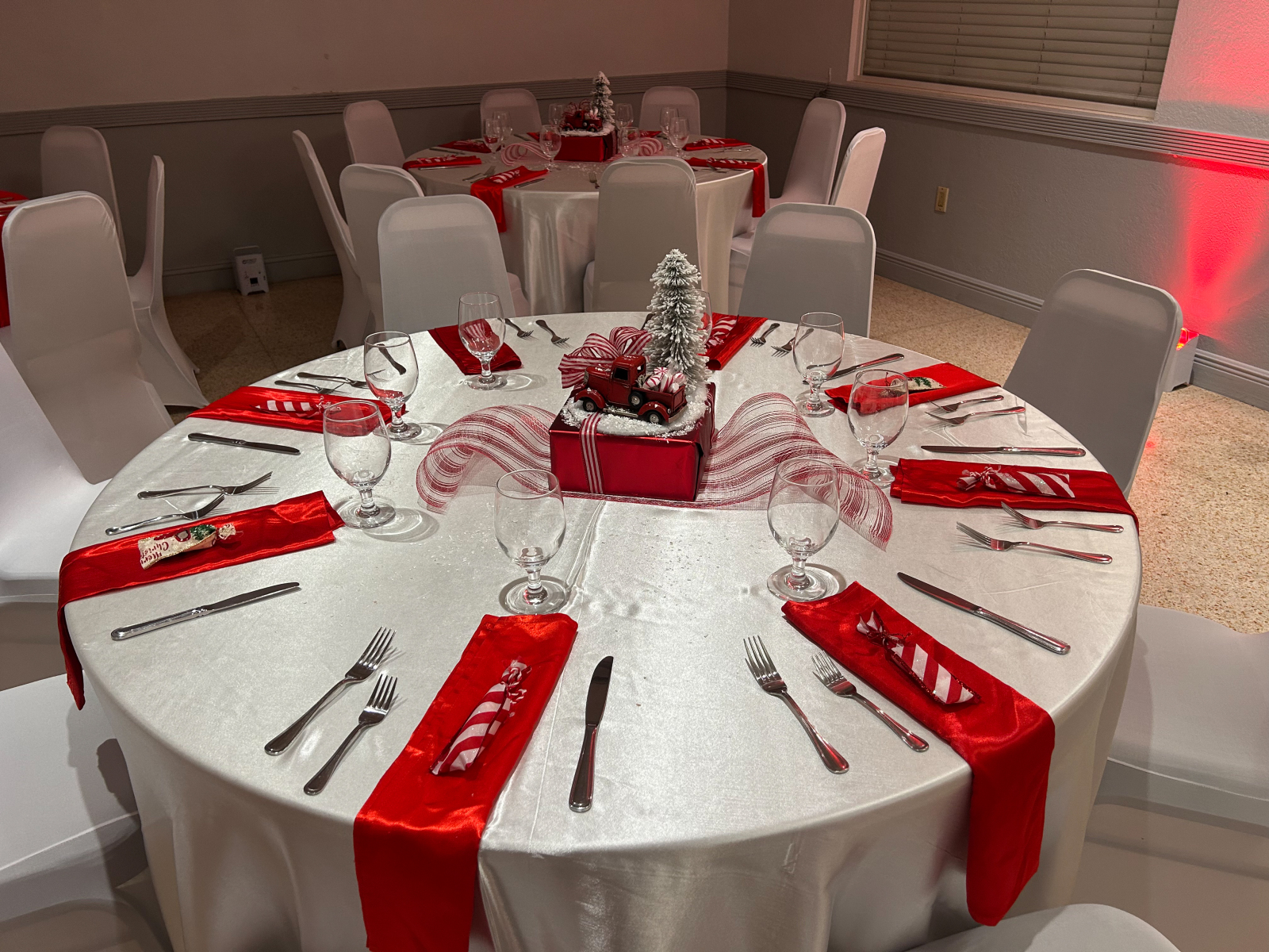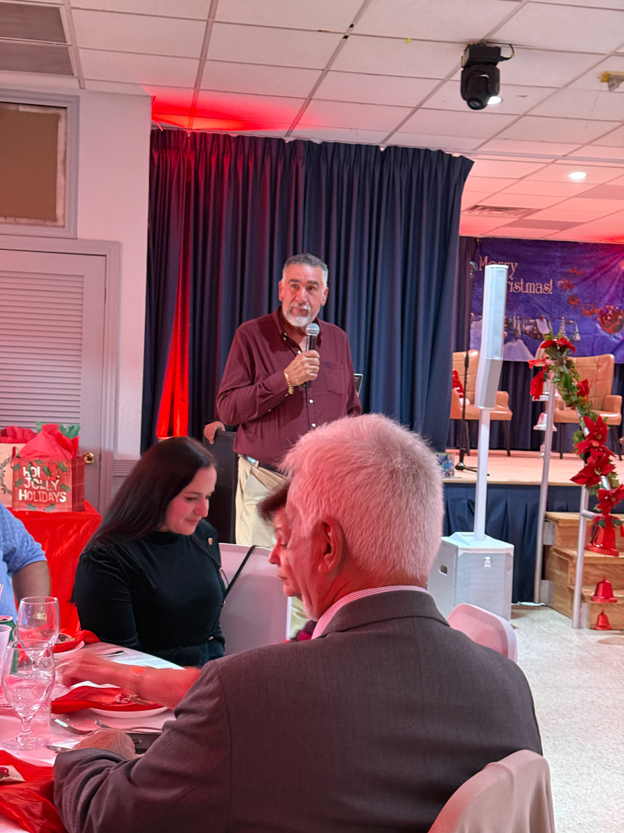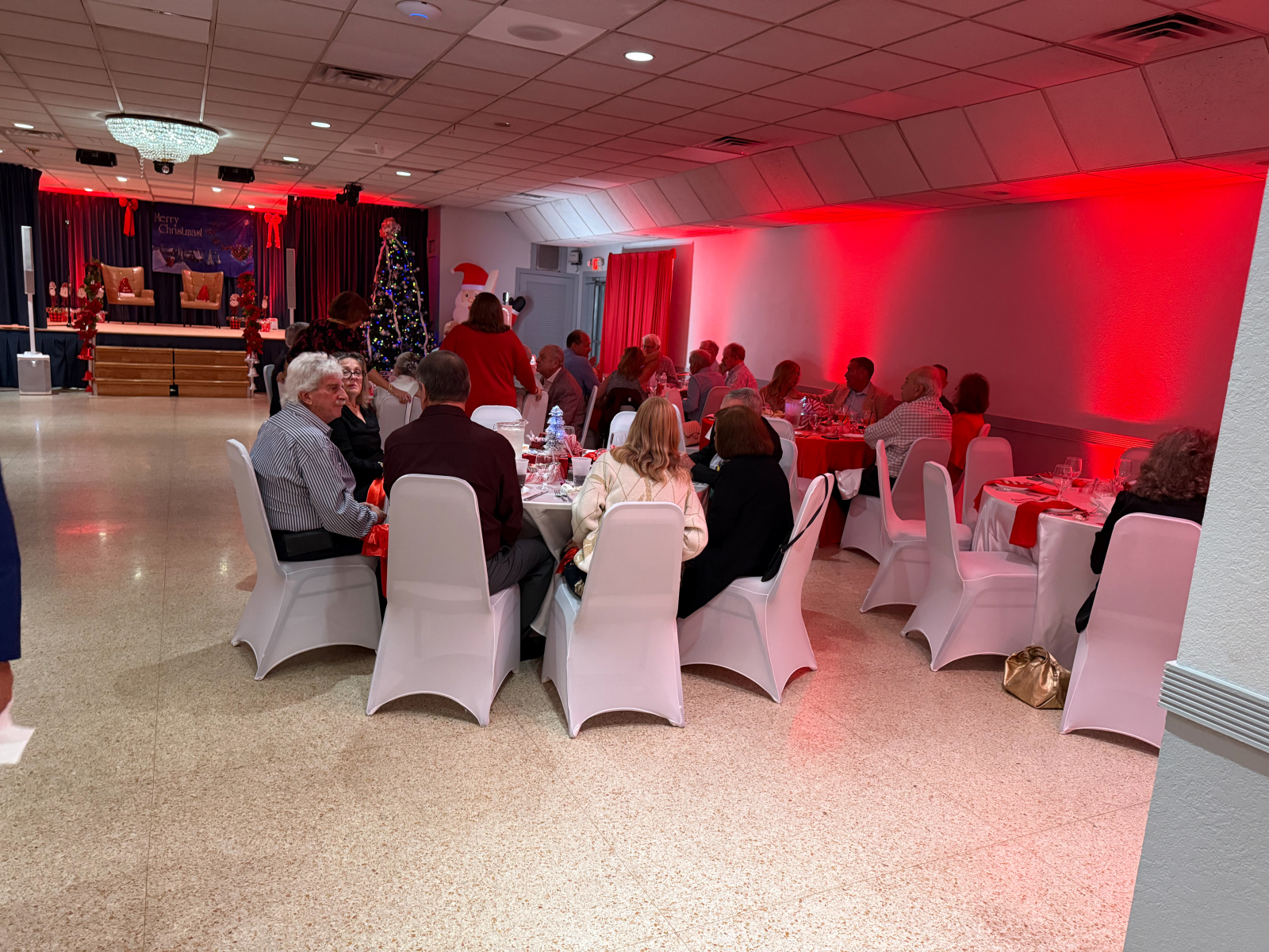 The Holiday Gale (Party) this year was at the same location we celebrated the 70th Anniversary of the club earlier this year. The Miami Outboard Clyb hosted both events and did an amazing job. Thanks to member Tony Hernandez for all the assistance with the MOC in getting everything ready. In charge of decorating Yovanna Hernandez, Millie Garcia, Al and Miriam Padilla did an amazing creative job as always. The venuw was set up with a very festive holiday theme and colors in red and white.