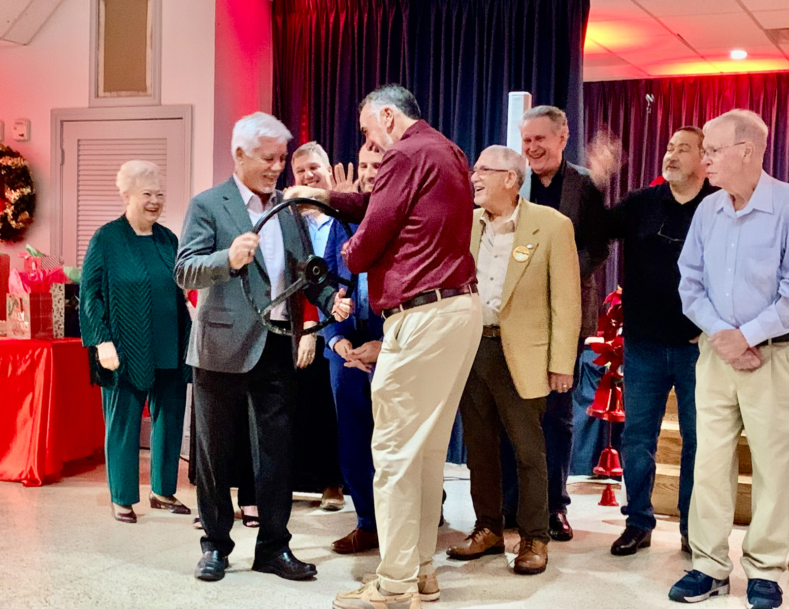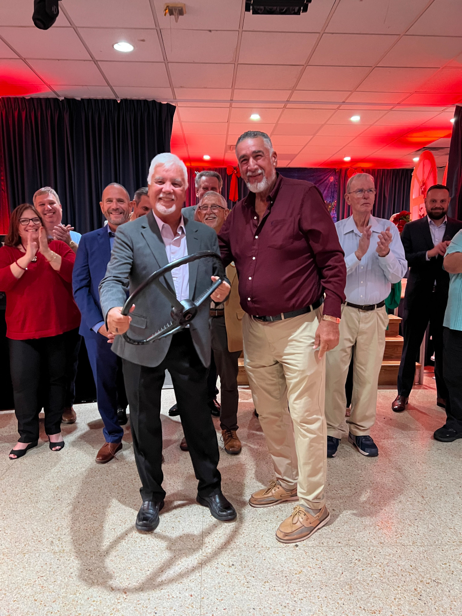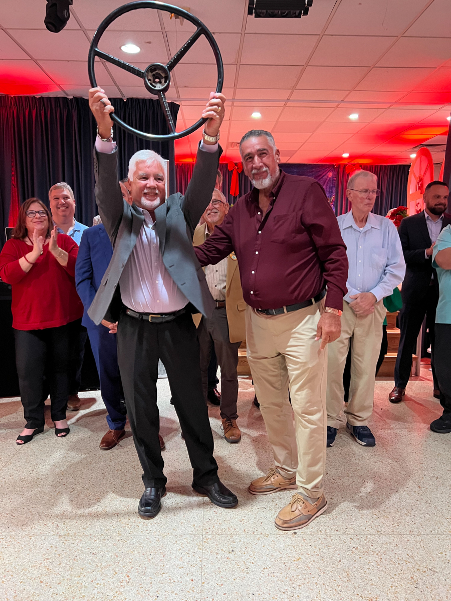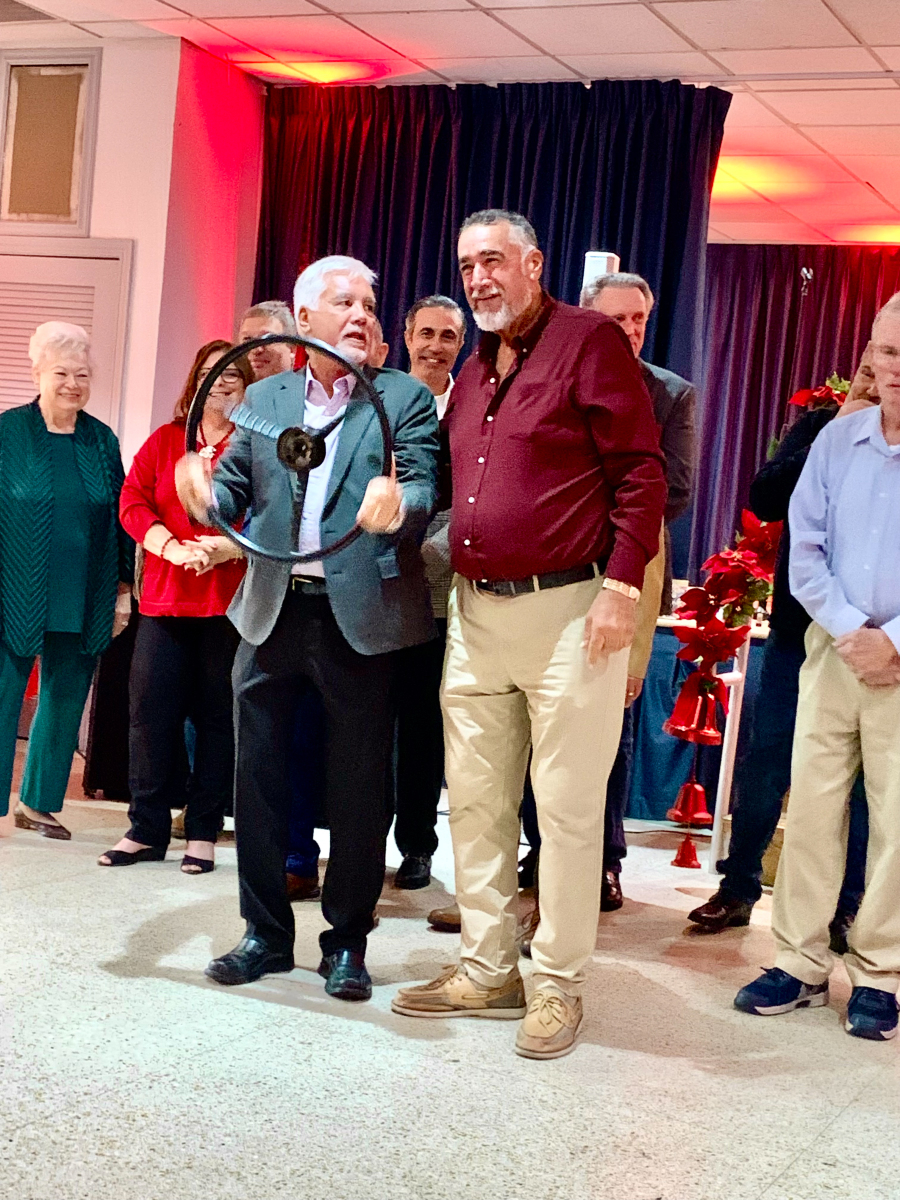 As the dinner was being served the Swearing in Ceremony was conducted, swearing in the new 2026 Board of Directors. Ira Shapiro presided over the swearing in of the board as the clubs Parliamentarian, the 2026 board welcomed in 4 new members on the board Junior Valdes, Tony Hernandez, Alejandro Clay and Angel Aulet. After the swearing in took place, Tomas Hernandez presented the ‘Steering Wheel’ to newly sworn in president elect Al Padilla, to conclude the board ceremonies.