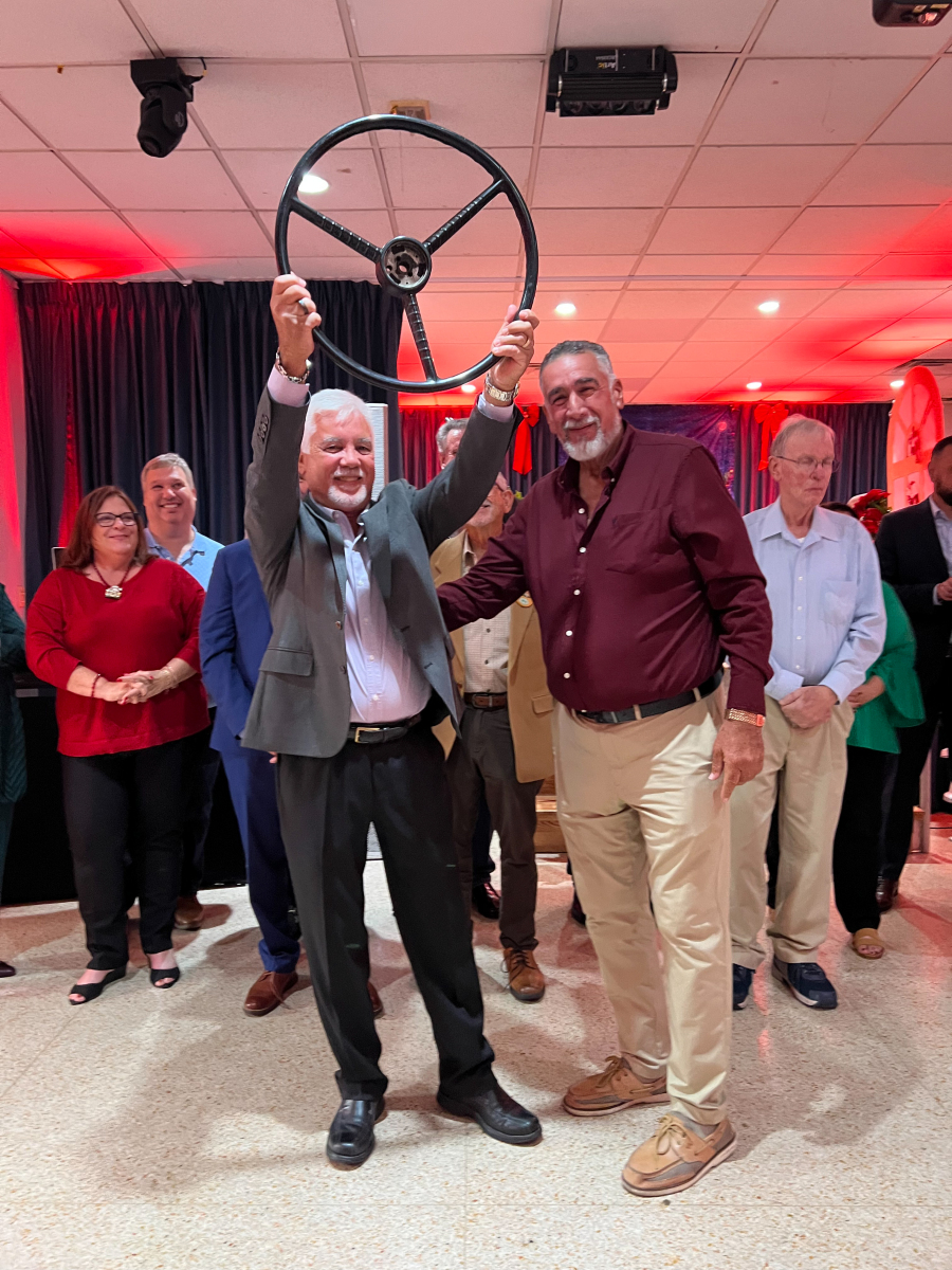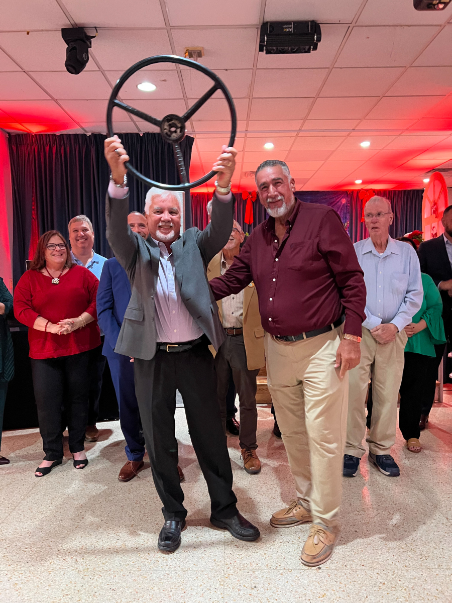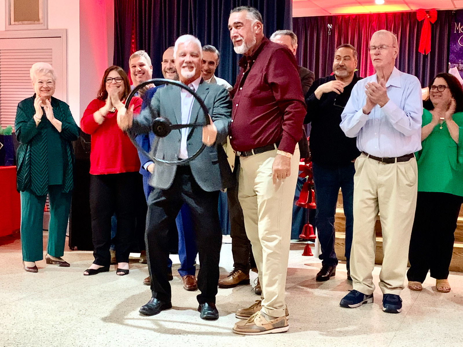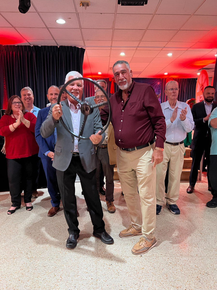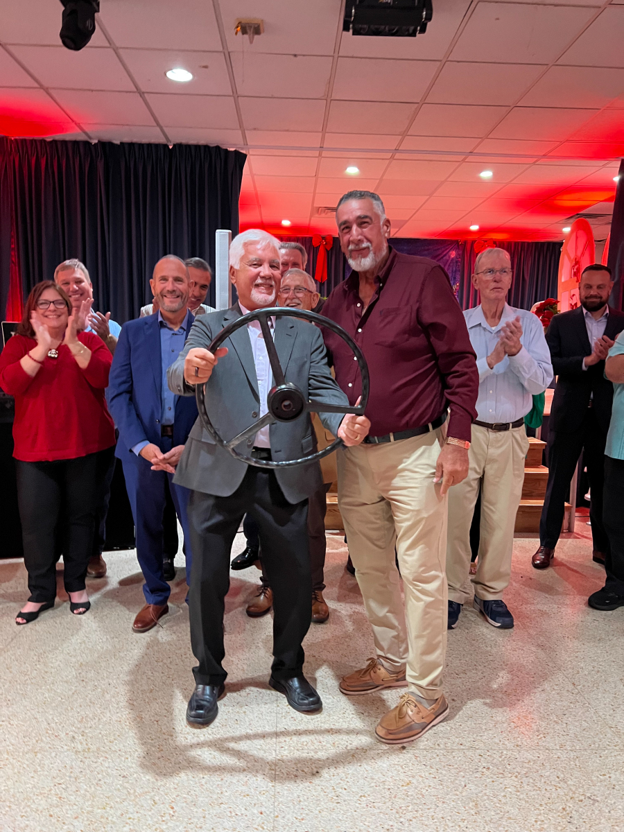As the dinner was being served the Swearing in Ceremony was conducted, swearing in the new 2026 Board of Directors. Ira Shapiro presided over the swearing in of the board as the clubs Parliamentarian, the 2026 board welcomed in 4 new members on the board Junior Valdes, Tony Hernandez, Alejandro Clay and Angel Aulet. After the swearing in took place, Tomas Hernandez presented the ‘Steering Wheel’ to newly sworn in president elect Al Padilla, to conclude the board ceremonies.